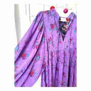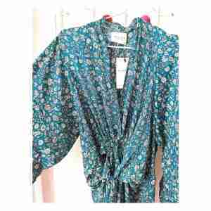Som en nyhed introducerer vi nu Juno Long Dress. En nyfortolkning af vores bestseller kjole, Juno Dress. Til denne bæredygtige bestseller har vi upcyclet de smukkeste vintage sarier og re-designet dem til et moderne style med nordiske snit og silhuetter. Denne kjole er en smuk kimono-inspireret kjole med brede ærmer og drapering i taljen, der giver en flot silhouette. Kombinationen af afslappet pasform og eksotisk dramatik gør at denne one of a kind-kjole kan bruges til enhver lejlighed.